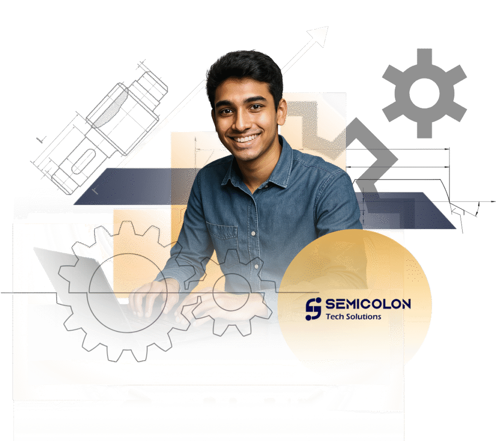 At Semicolon Tech Solutions, an ISO 9001:2015 certified company, we help students, startups, and engineering firms turn ideas into real-world success. From precision-driven mechanical design and sheet metal manufacturing to cost-effective engineering estimates and lead-generating industrial websites — we deliver results.